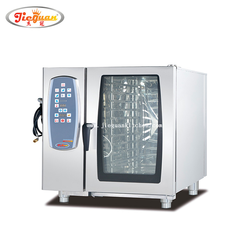Un horno combinado, abreviatura de horno combinado, es un equipo de cocina versátil que combina las funciones de un horno de convección convencional y una vaporera en una sola unidad. La ausencia de una caldera en un horno combinado puede parecer inusual, ya que la generación de vapor normalmente se logra mediante una caldera interna. Sin embargo, los modelos más nuevos o diseños específicos de hornos combinados pueden funcionar sin una caldera tradicional empleando métodos alternativos para producir vapor.